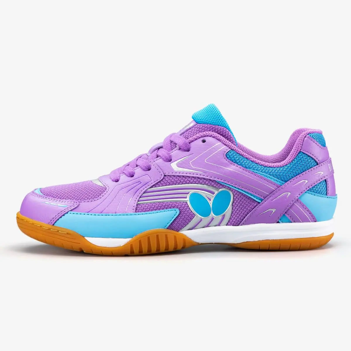 A forma do calçado, desenvolvida exclusivamente para o tênis de mesa, oferece um ajuste confortável, proporcionando aderência, amortecimento e durabilidade necessários para os movimentos do esporte.